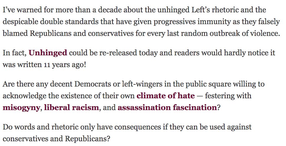 Did you ask Gabby Giffords abt this "climate of hate"? And "Festering with misogyny" is a PLATFORM of Conservatives/GOP. YOU are unhinged.