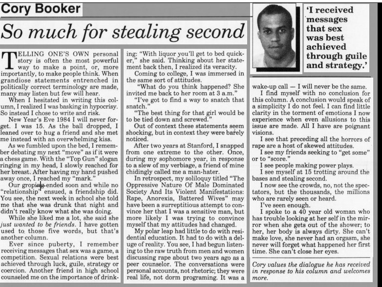 You can tell Booker thinks he's God's gift. He reminds me of someone on a dry drunk.