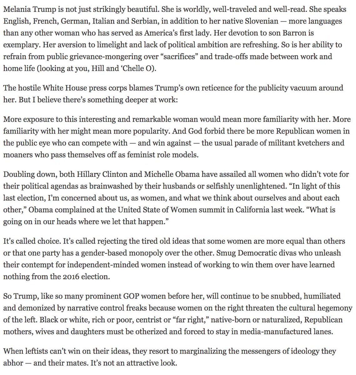 Jealousy - Melania has what they don't. Beauty, Grace, Charm, Success, Honor, Intelligence, Strong Family, Rich Husband - But Most of all, Faith in God and Values. Only FERALS have any complaints.