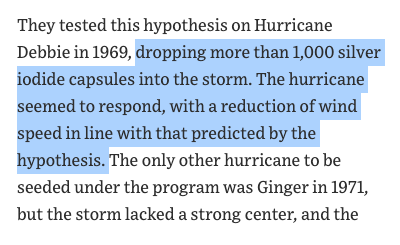 there is an entire field of concepts we abandoned not because science proved them impossible, but because we decided, culturally, they sounded crazy. modifying hurricanes is absolutely something we should be focussed on. https://www.wsj.com/articles/when-the-u-s-tried-to-control-hurricanes-11573880461 …pic.twitter.com/WpkS2V3r0K