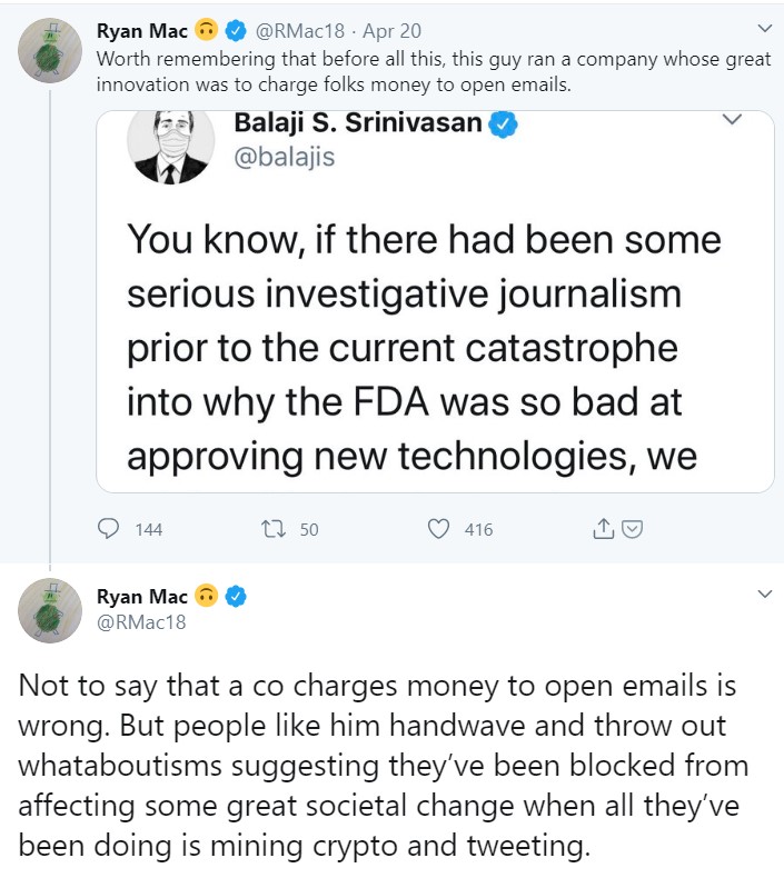 agreed, Balaji's point was to stress he'd created value doing genomics. but where did Ryan "essentially call Balaji poor," as you said? not in the 2 tweets Balaji was responding to. was it somewhere else he raised the issue of how much or little money Balaji had made?pic.twitter.com/nbDE2GLpA9