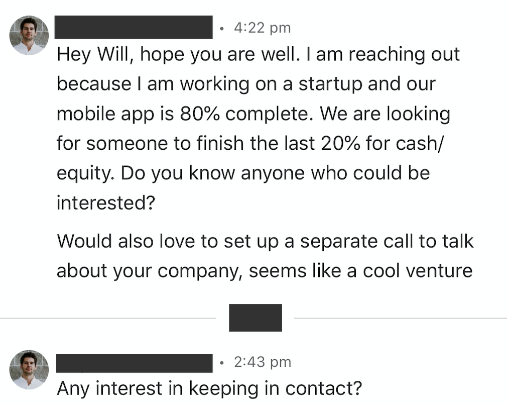 old acquaintance: wow! long time, hope this email finds you well I was wondering if you'd... *me thinking* huh so are we going to pretend like you didn't publicly disparage me on twitter or to all our mutual friends me: yeah so good to hear from you, happy to catch up next year