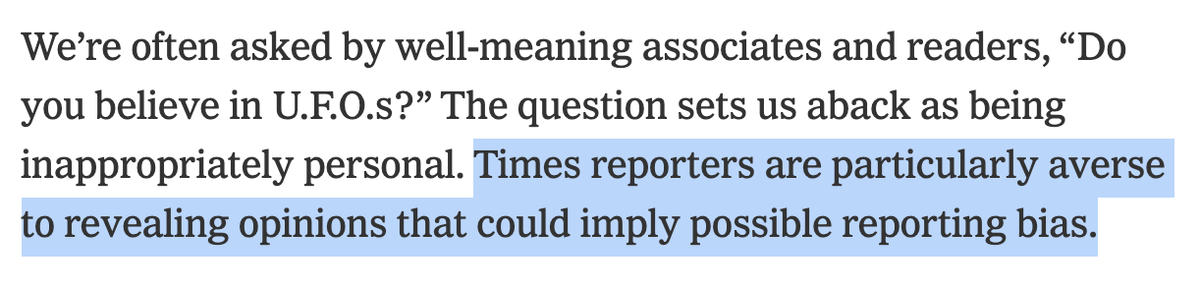 My concern too. Because they're writing about something that doesn't have an obvious tribal angle, they *appear* more neutral. But could still be factually wrong. And they aren't credible on the small things we can independently check, like this: https://www.nytimes.com/2020/07/28/insider/UFO-reporting.html …pic.twitter.com/wrIViFT0fn