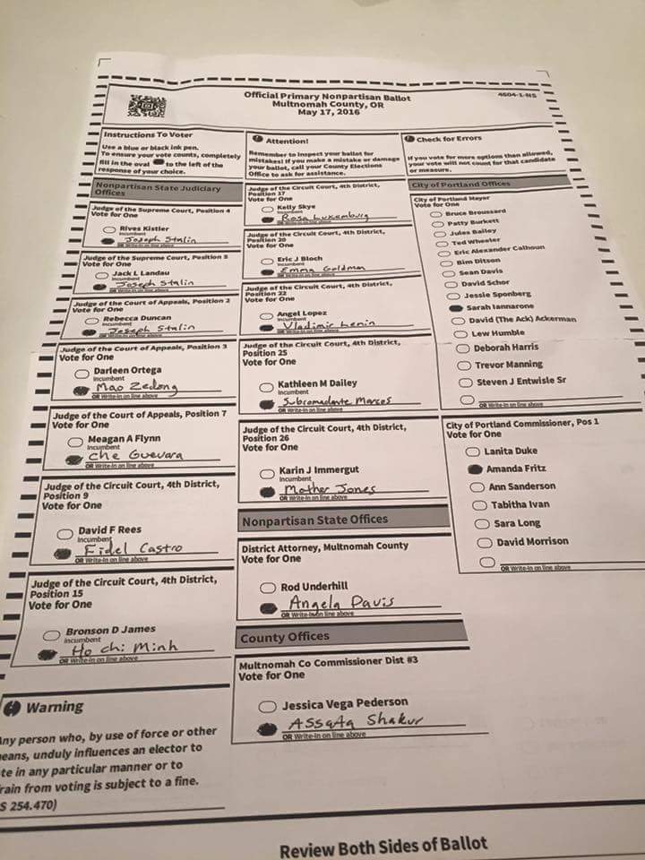 Quite possibly my favorite "I voted this way" photo to date (tho I 😍 them all) #pdxmayor #forcetherunoff pic.twitter.com/1lEFSWf15y