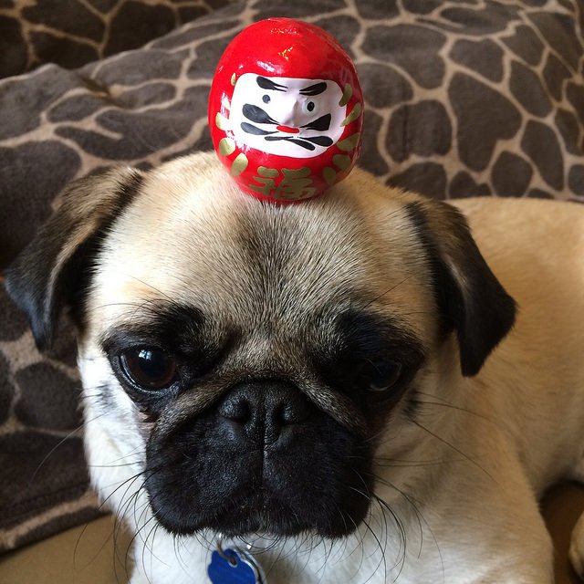 The Daruma doll is a symbol of perseverance. Their eyes are both plain white when you buy them and the tradition is to fill in one eye when you set a goal, and then fill in the other when your goal is achieved.