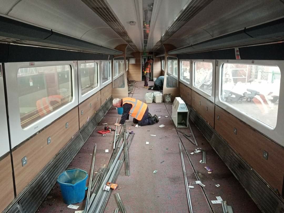 @greateranglia Mk3 carriages, every seat is being removed and stripped down - allowing the coach to be heavily cleaned, and the seats restored in seating bays, with tables. 1/2pic.twitter.com/K57ID77utM