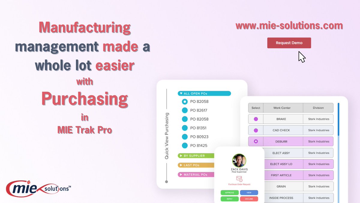 Purchasing should be simple and automated. MIE Trak gives you the ability to make smart purchasing decisions based on reorder points, open work orders, and forecasted workload. Request a demo today! https://hubs.ly/Q016h9800