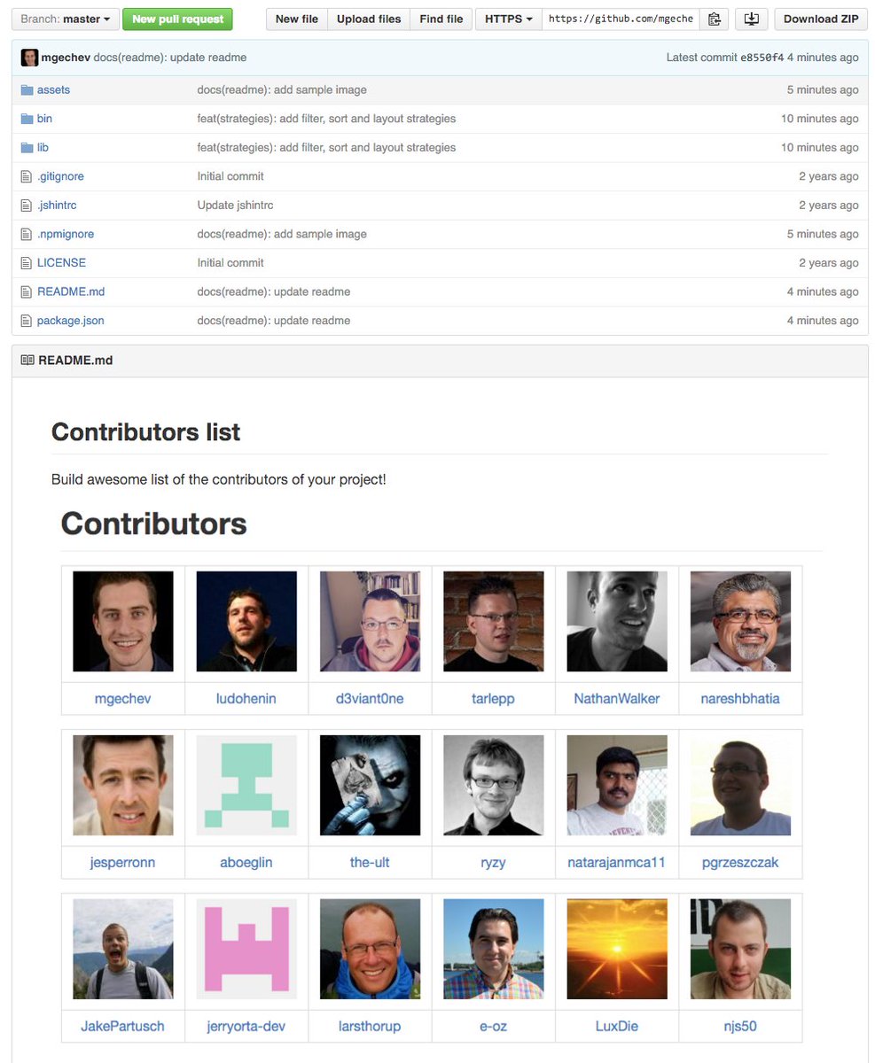 CLI tool for building a fancy list of open source project contributors! Just npm install -g github-contributors-listpic.twitter.com/nLoiWfVEJg