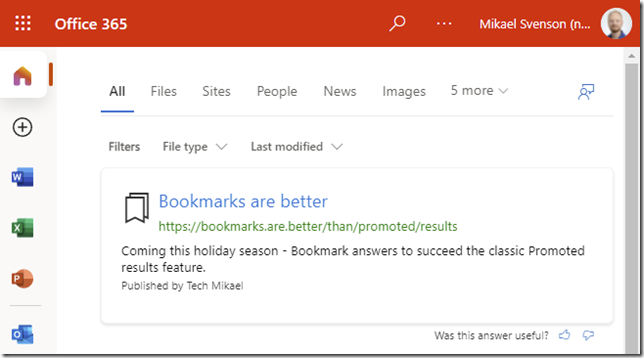 Phase 1 of Bookmarks to take over for promoted results in Microsoft Search https://www.techmikael.com/2021/11/phase-1-of-bookmarks-to-take-over-for.html …