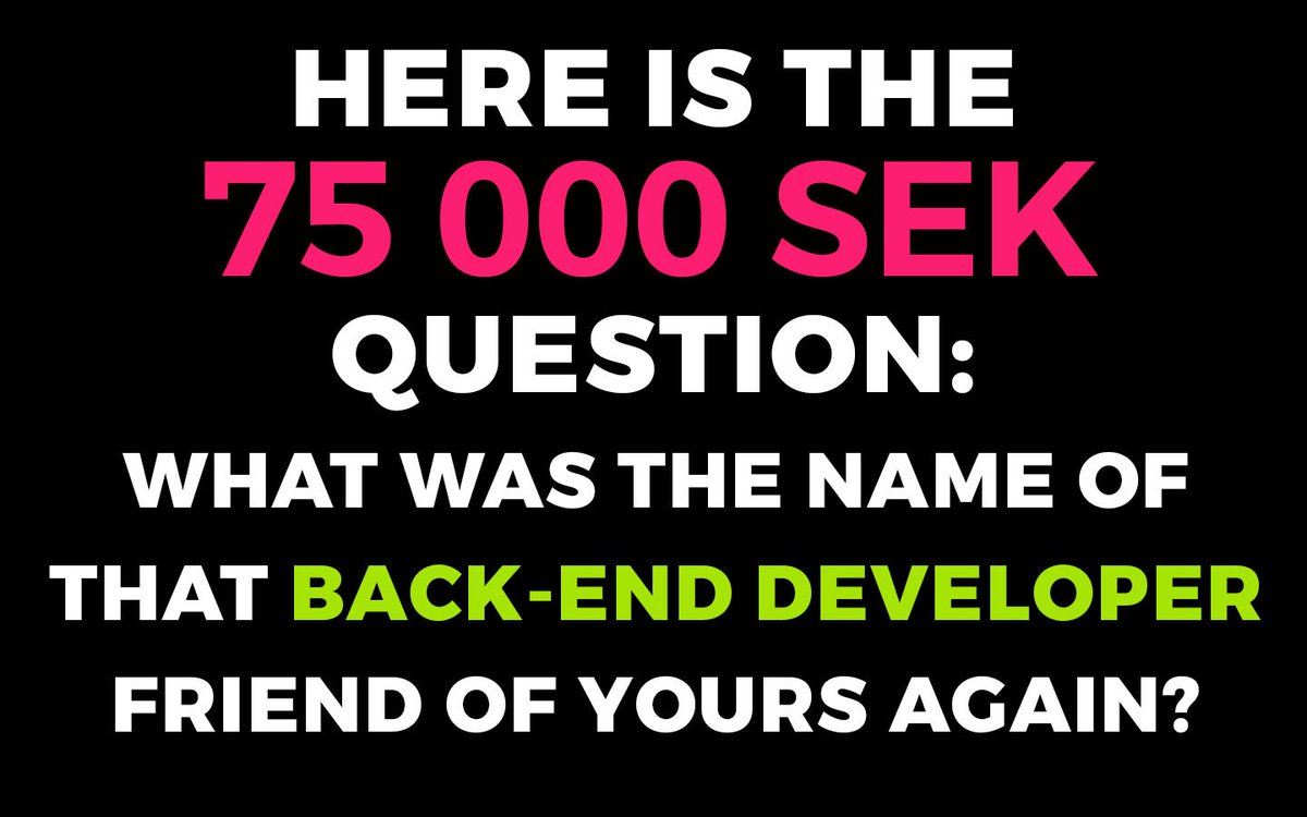 We're looking for our next senior back-end developer. And if you find him/her, we'll give you 75000 SEK. More info: http://ow.ly/8rBw30bAYXi .pic.twitter.com/HajBd2onE9