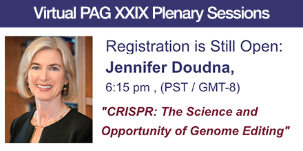 #PAGXXIX Plenary Session, featuring speaker Jennifer Doudna, 2020 Chemistry Nobel Laureate and co-creator of#CRISPR Info: http://ow.ly/Ilgn50HqucM Are you attending? Sign up and join us on Zoom: http://ow.ly/COVL50HqucK#genomicspic.twitter.com/YPqQIvVP26