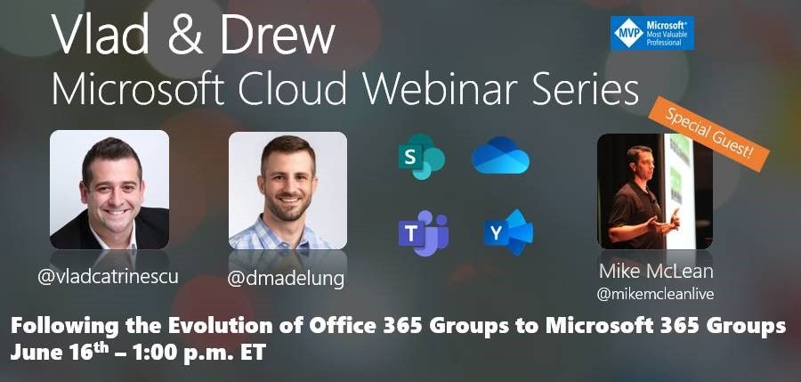 @vladcatrinescu,@dmadelung, and myself tomorrow at 10am PST/1pm EST for a discussion on groups!#Office365Groups#Microsoft365Groupshttps://twitter.com/dmadelung/status/1272625776391794694 …