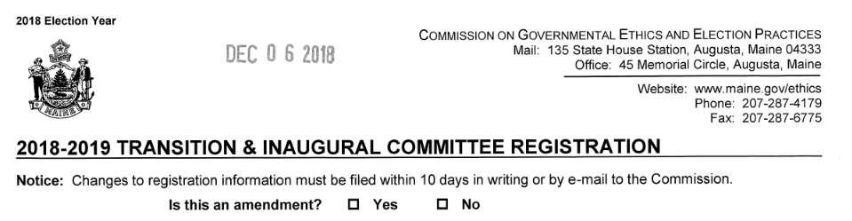 @JanetMillsforME has registered her transition committee with the state, effectively meaning that she's starting to raise private funds. Context here: https://bangordailynews.com/2018/11/28/politics/daily-brief/janet-mills-will-have-to-disclose-transition-donors-in-a-first-for-maine-governors-elect/ …#mepoliticspic.twitter.com/vPtt93pGRn