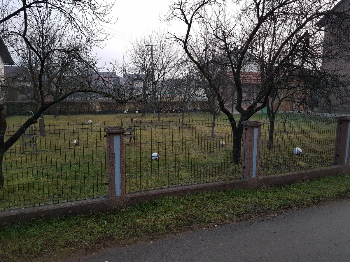 In my neighborhood there are two kids loving soccer/football. There are nine soccer balls in the photo.