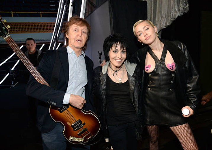 Paul McCartney, Joan Jett & Miley Cyrus attend the 30th Annual Rock And Roll Hall Of Fame Induction Ceremony at Public Hall on April 18, 2015 in Cleveland, Ohio.