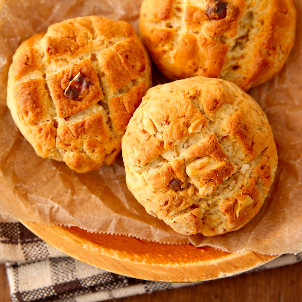 ホットケーキミックスで簡単! バターなしでもおいしい。 「切り込み」入れるだけでサクサク感最高なスコーン作れます。 ポリ袋で作れば洗い物少ないです。 ホットケーキMIX150g、砂糖大1、ヨーグルト大3、オリーブ油大1混ぜ6等分。厚さ2cmの丸型に整え切り込み入れ180度予熱したオーブンで15分。pic.twitter.com/vnHu9rSgJg