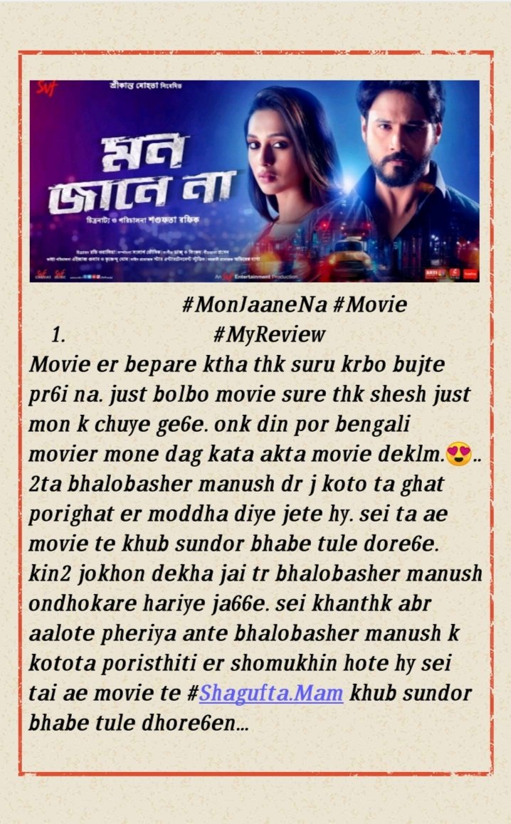 Bcz onk din por bengali movie te aemon akta mon k chute jawa movie dekhlm jeta moner govire dag kete ge6e..