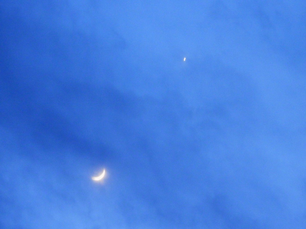 #今日の夕焼け#雲の切れ間に月#今日のトキさんpic.twitter.com/e4VDhHUfrX