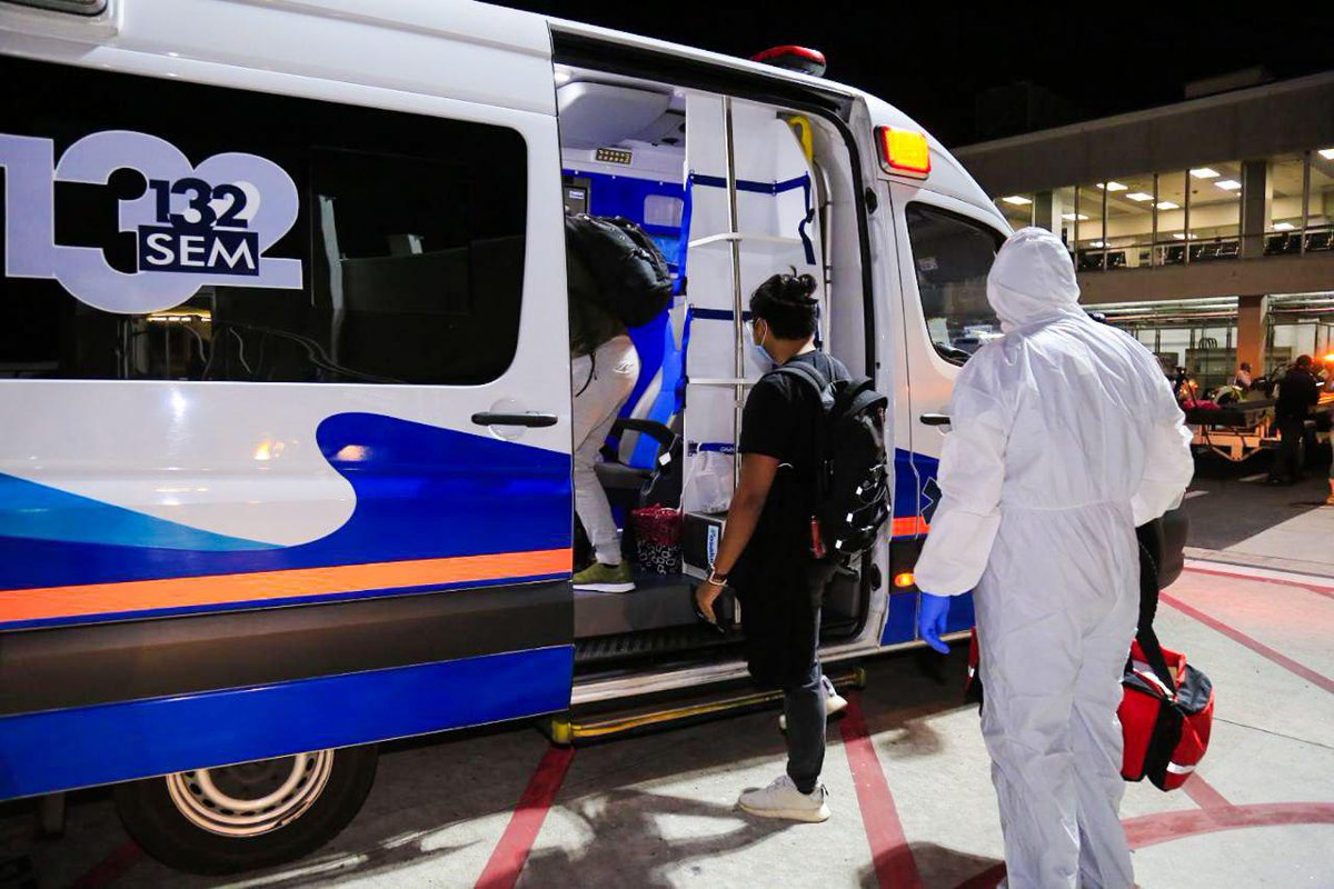 @Fosaludoficial traslada a tres becarios; dos hombres y una mujer, a la Oficina Sanitaria Internacional (OSI) del Aeropuerto para cumplir con los protocolos e iniciar con la cuarentena. Ellos llegaron esta noche procedentes de China, con una escala en Colombia.pic.twitter.com/ZtzD47TLhC