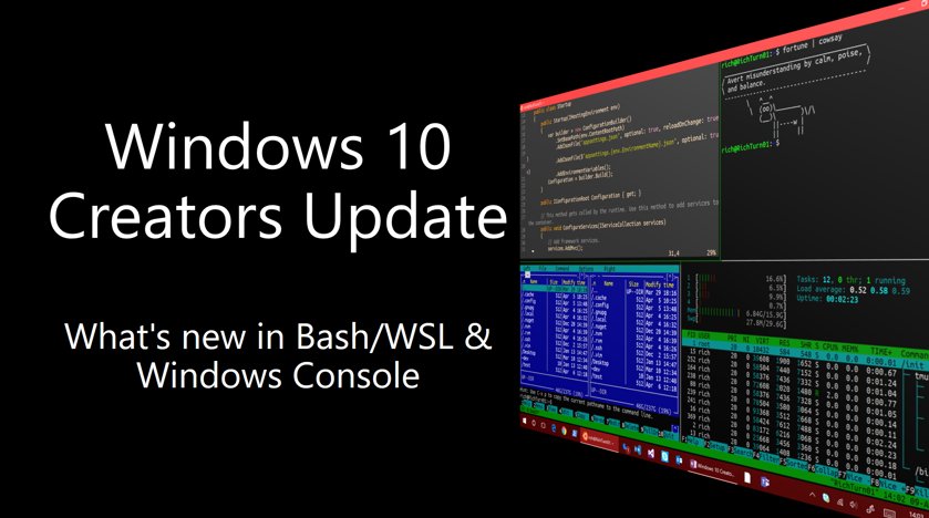 Blogged: Windows 10 Creators Update: What’s new in Bash/WSL & Windows Console https://blogs.msdn.microsoft.com/commandline/2017/04/11/windows-10-creators-update-whats-new-in-bashwsl-windows-console/ …pic.twitter.com/IloUKX2Vyh