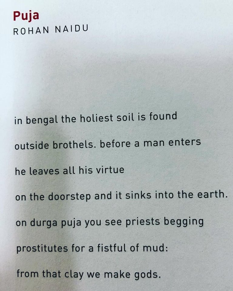 Puja, a poem by Rohan Naidu (from This Is Not A Safety Barrier https://www.ethosbooks.com.sg/products/this-is-not-a-safety-barrier …)pic.twitter.com/N8crS2J5E7