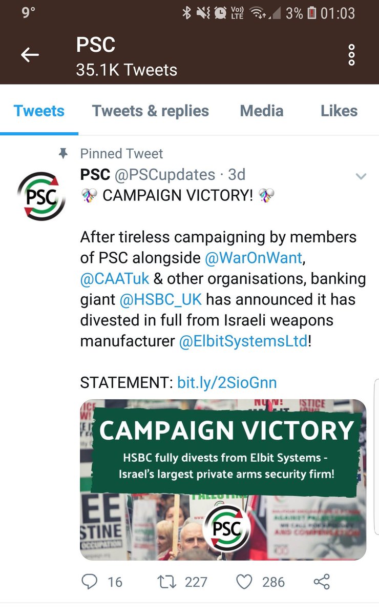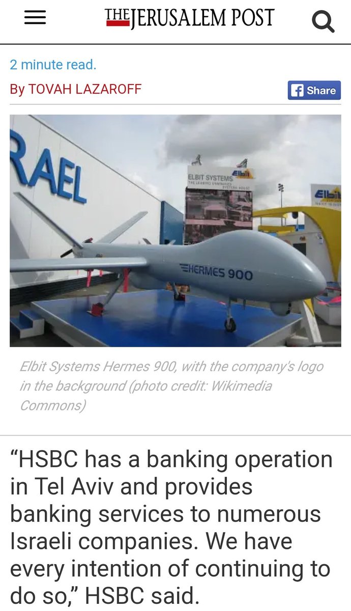 #Israel. Will@PSCupdates &@WarOnWant apologise for lying to Media, lying to public, lying to everyone. Retweet, like and repost to show the PSC and WoW, the British people will not be mislead! https://m.jpost.com/BDS-THREAT/HSBC-tells-Post-We-divested-from-Elbit-over-clusters-bombs-not-BDS-576175 …pic.twitter.com/Sq24frYp9Q
