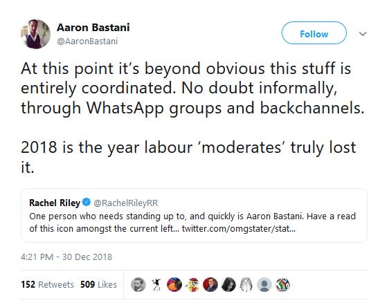 @RachelRileyRR has had a go at him@AaronBastani has everyone conspiring in secret places to coordinate an attack. It is the way Jews are viewed by those that hate us. We have a hive mind, like the Borg. We have no independent agencypic.twitter.com/AY9J08YkR4