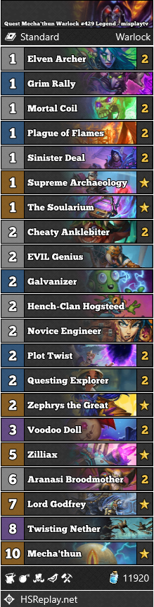 HEARTHSTONE QUEST MECHA’THUN WARLOCK #429 LEGEND – @MISPLAYTV CODE: AAECAf0GDJwC2wac+ALx+wLX/gKggAOPggPchgOInQPHnQProwP8owMJhQPECLfxAteJA9qWA9qbA/qkA7ulA52pAwA= https://hearthstone-decks.net/quest-mechathun-warlock-429-legend-misplaytv/ …pic.twitter.com/oU0NSNyLrB