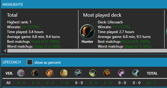Won 13 in a row to #1 with updated version of quest hunter (took the list from hsreplay) Overall score with this version: 27-4 Code: AAECAR8IrwTh9QKggAPjiwOkpQPYsgOftwPztwMLlwjbCaCFA8edA+SkA7ulA5ipA46tA/ivA4KxA7i2AwA=pic.twitter.com/xf3tL3jKxq
