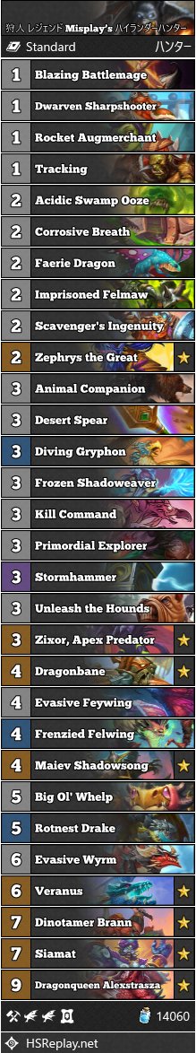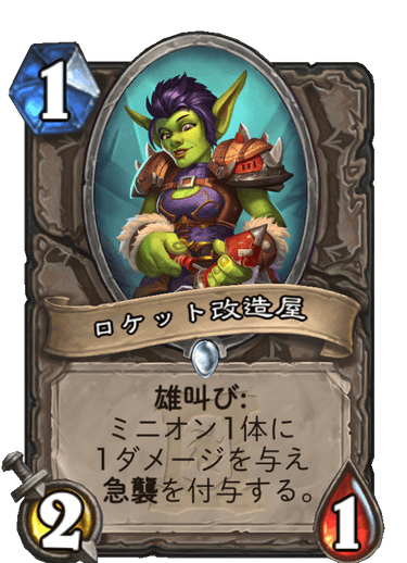 挑発ミニオンを捨てた、アグロ寄りのリスト。ロケット改造屋や冷たき影の紡ぎ手などで盤面を確保しながら戦います。戦績は32勝16敗(勝率67%)