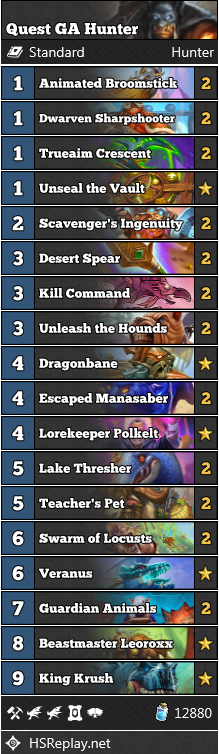 Okay tried some games on ladder and quest hunter isn't viable unfortunately vs all the top meta decks. Here are more detailed stats on the BroomLander though. Peaked at 607yesterday.pic.twitter.com/iKqToxNUdk