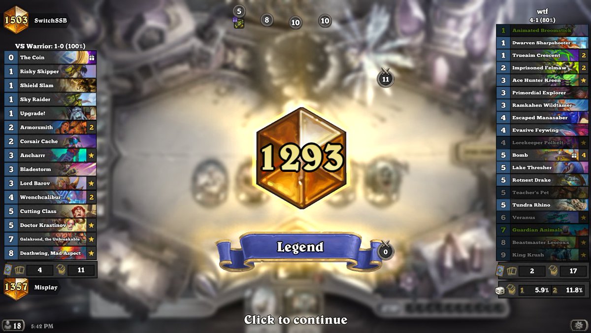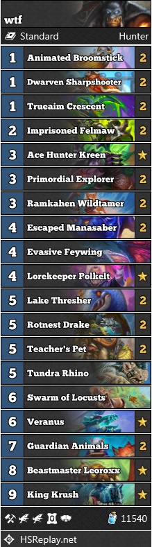 Don't ask what happened to my rank. But definitely worth to create new fun and viable decks. We don't run the stormhammer because we just want to control the board with trueaim cresent which has insane synergy with primordial explorer and lake thresher.pic.twitter.com/hJLjVSohny