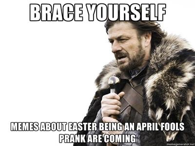 Easter Sunday is on April 1st this year, which means that April Fools' Day = Easter Sunday.pic.twitter.com/uLvs7aBVxo