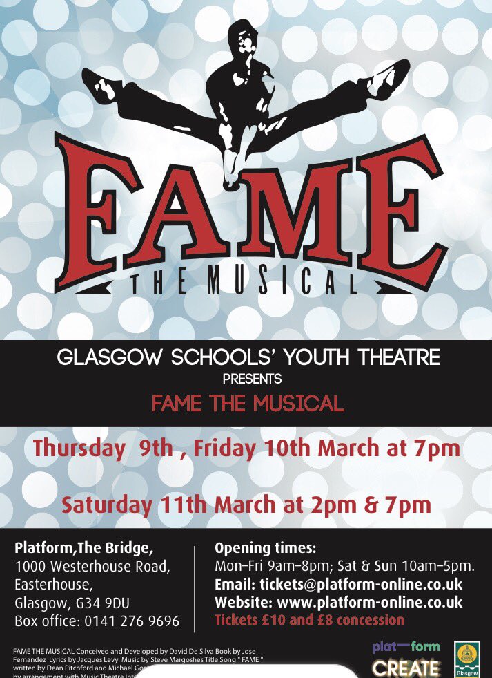 Exciting news!! Tickets for the Glasgow Schools Youth Theatre performance of Fame