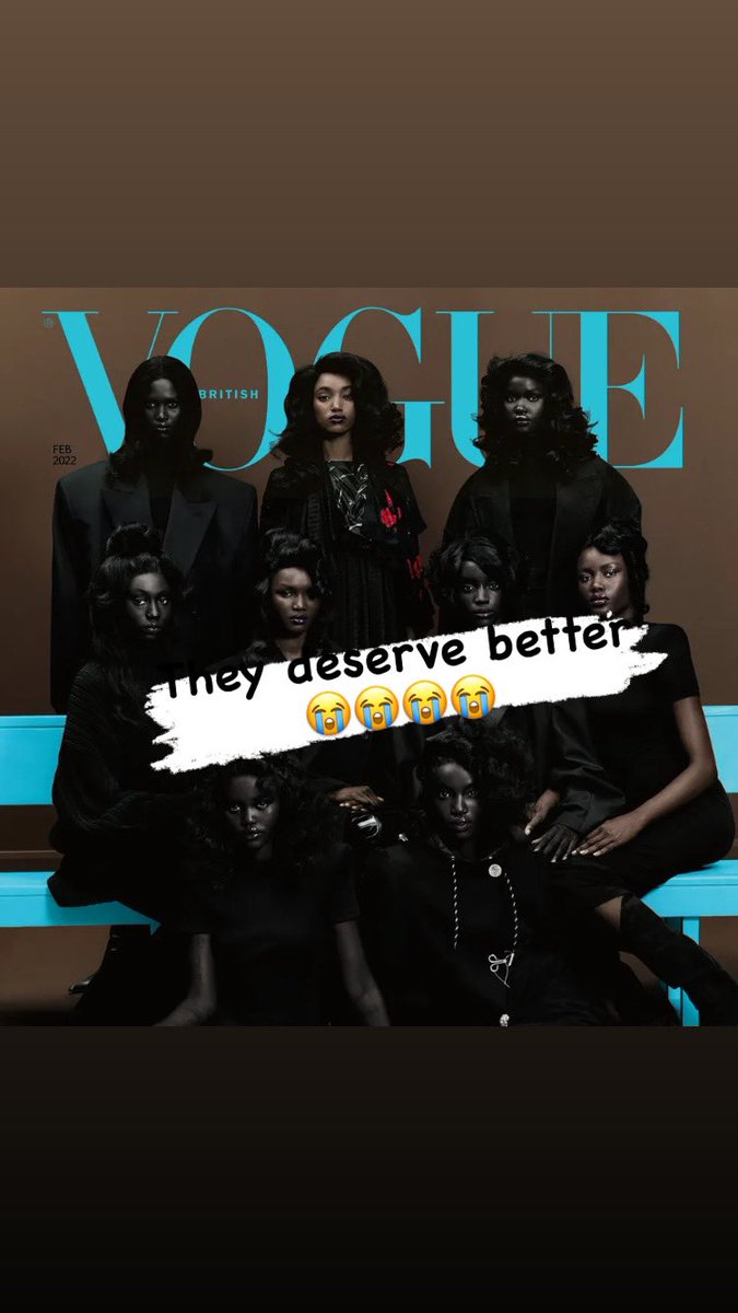@BritishVogue cover, they will be laughing at these black, blue models that@Edward_Enninful put on the@BritishVogue cover. It's ok to degrade black girls refugees who lack mentors, agency & editorial power. Will you win an Oscar for this? Maybe