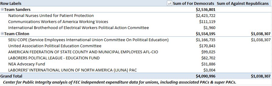 Unions have spent ~$4 million on ads in the Democratic presidential race so far — about 1.6-to-1 ratio for Sanderspic.twitter.com/yIjxLtt7uy