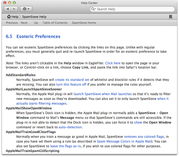 I like how @mjtsai handles "esoteric" preferences. You click to enable or disable features from @SpamSieve’s help.pic.twitter.com/Lv2Yb6zAnc