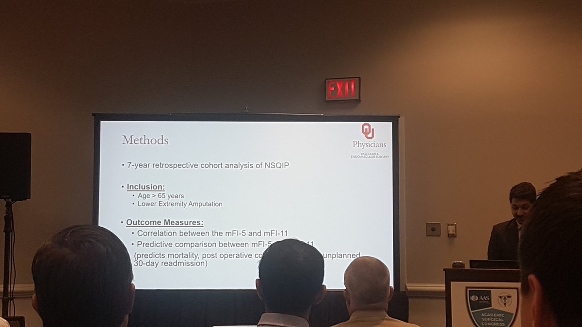 @VirajPandit describing the use of the 5 factor and 11 factor#mFI for predicting outcomes in lower limb#amputation patients. Great talk!#Frailty@UofOklahoma@PhysiciansTulsa@OUVascular@VascularAzpic.twitter.com/9TMgFM2iRY