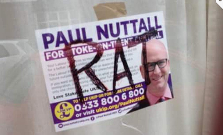 A UKIP leaflet "amended" and stuck in window of Stoke housepic.twitter.com/JSQBS4Rxk7