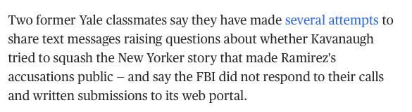 If there are in fact texts proving Kavanaugh was trying to coach witnesses about the Ramirez incident before he admitted to learning about the allegation in the New Yorker, proving perjury, then there should be a microphone and a reporter in front of Flake and Collins immediatelypic.twitter.com/cU3bL854Oz