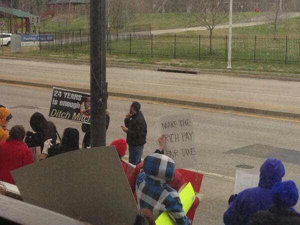 About a dozen protesters outside of McConnell appearance in Frankfortpic.twitter.com/Ke4pz4O1uN