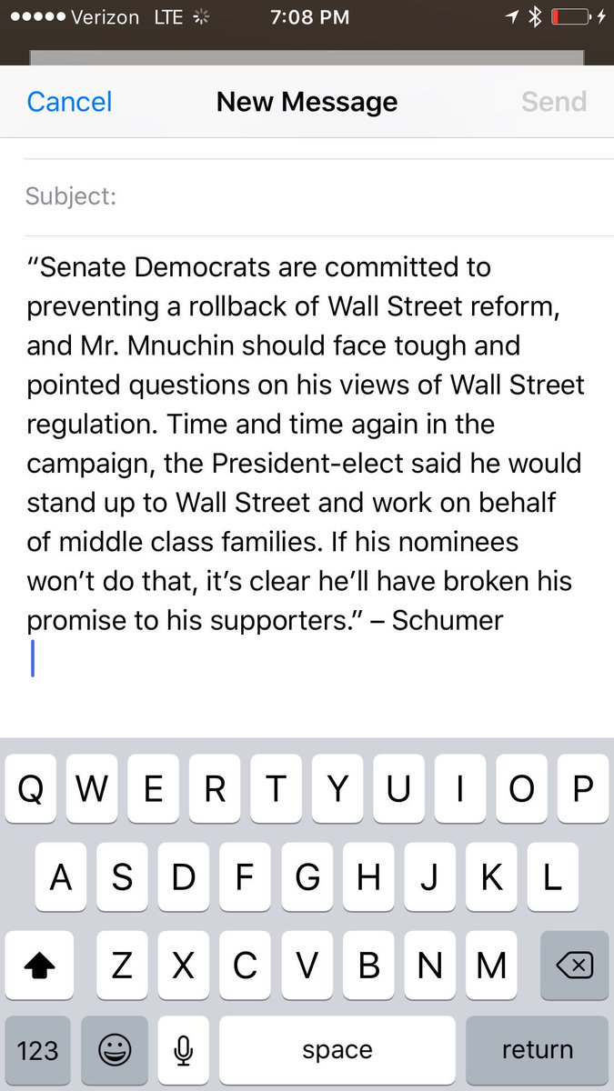 Schumer weighs in on Mnuchin, promises "pointed questions" on his views on Dodd-Frankpic.twitter.com/8SEwuL22Ch