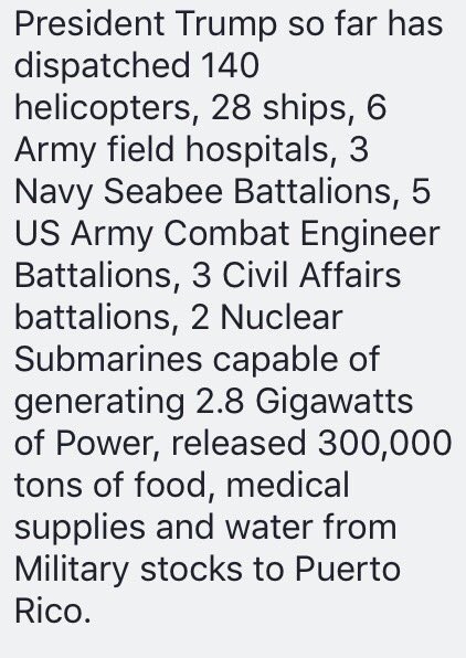 Yep. If you believe what Trump says, he's a better leader and instills unity btwn ppl better than her. Also, it's the Puerto Ricans fault