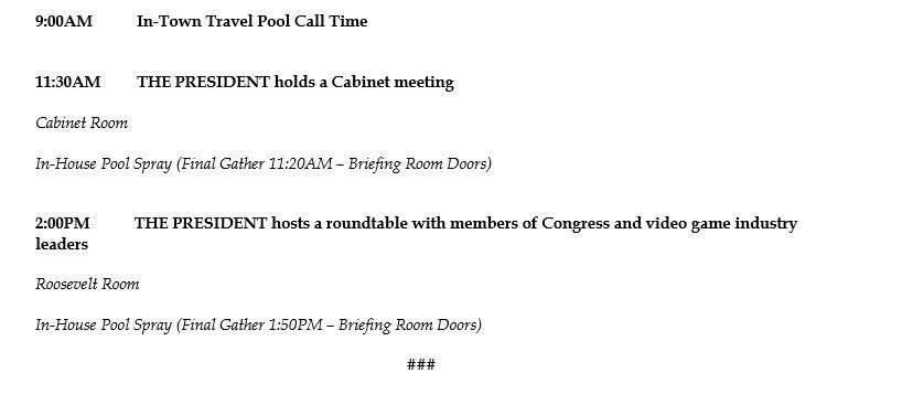 Thursday will be another Stormy day in the White House. Likely not on the schedule either.