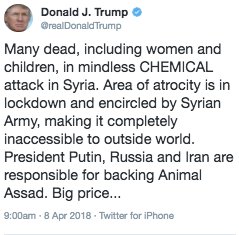 it shows his inconsistency however as it was just a couple of days ago he declared an intention to withdraw completely from Syria and leave it to Russia and Iran to deal with