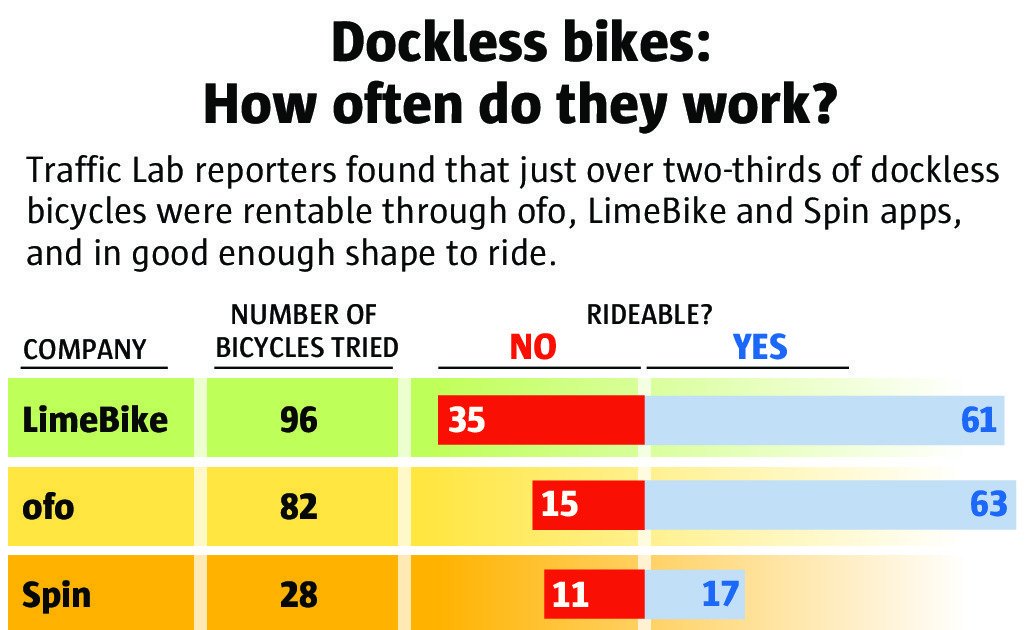 @MikeLindblom@davidlgutman and@mlbaruchman tested 206 dockless rental bicycles. 68.5 percent were rideable. Read more of our findings here: https://st.news/2NjDoYh What has been your experience in finding available bikes to ride?pic.twitter.com/g9mYFnPp5A