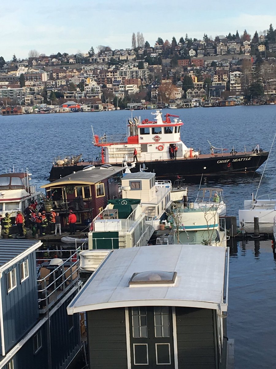 Seattle fire responding to what looks to be a sinking vessel docked in Lake Union