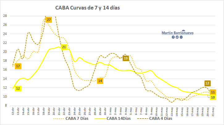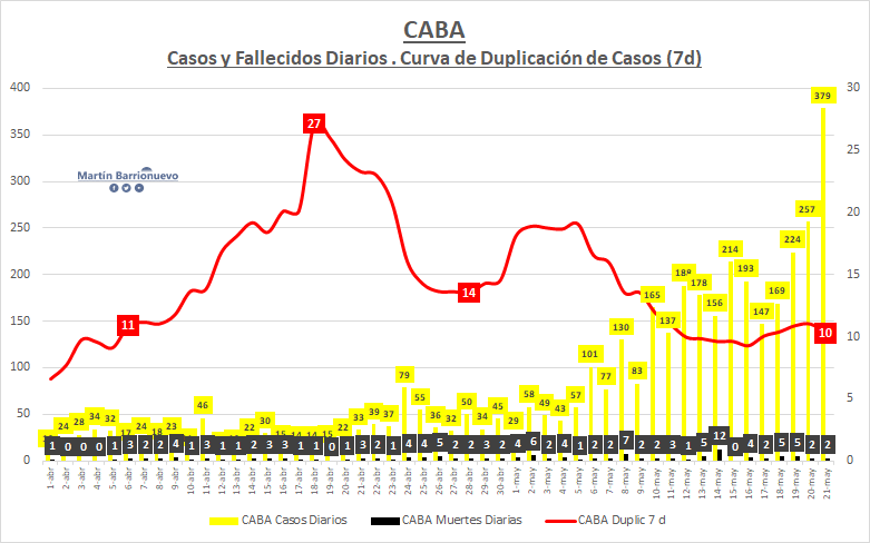 Analicemos el AMBA CABA (+9.9%) y Buenos Aires (+6.9%) en sus valores máximos hasta el día de hoy, las curvas de duplicación siguen cayendo y junto con ellas las de la Argentina.pic.twitter.com/HJVBmjHsnX