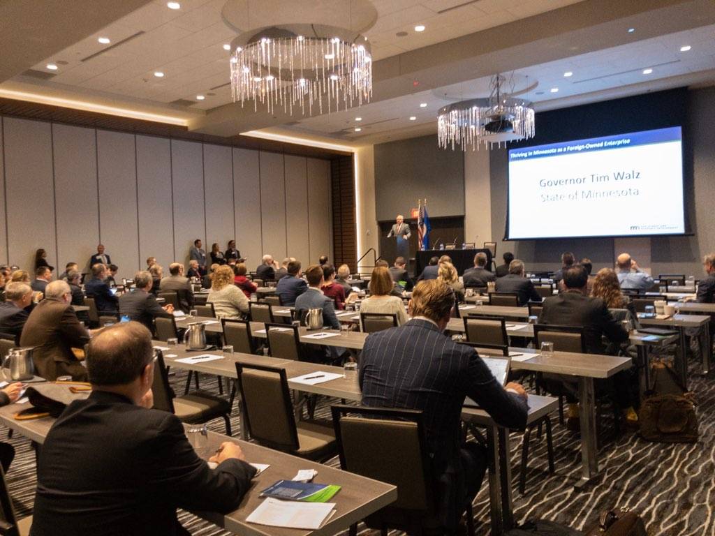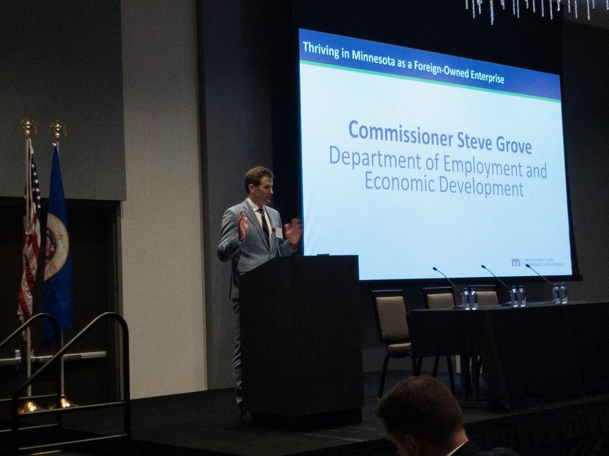@GovTimWalz opened and Commissioner@grove spoke today at the first annual Seminar for Foreign-Owned Enterprises Operating in Minnesota. This event helps executives at foreign-owned enterprises learn more about Minnesota and our state’s resources.pic.twitter.com/lF1h97pLhK