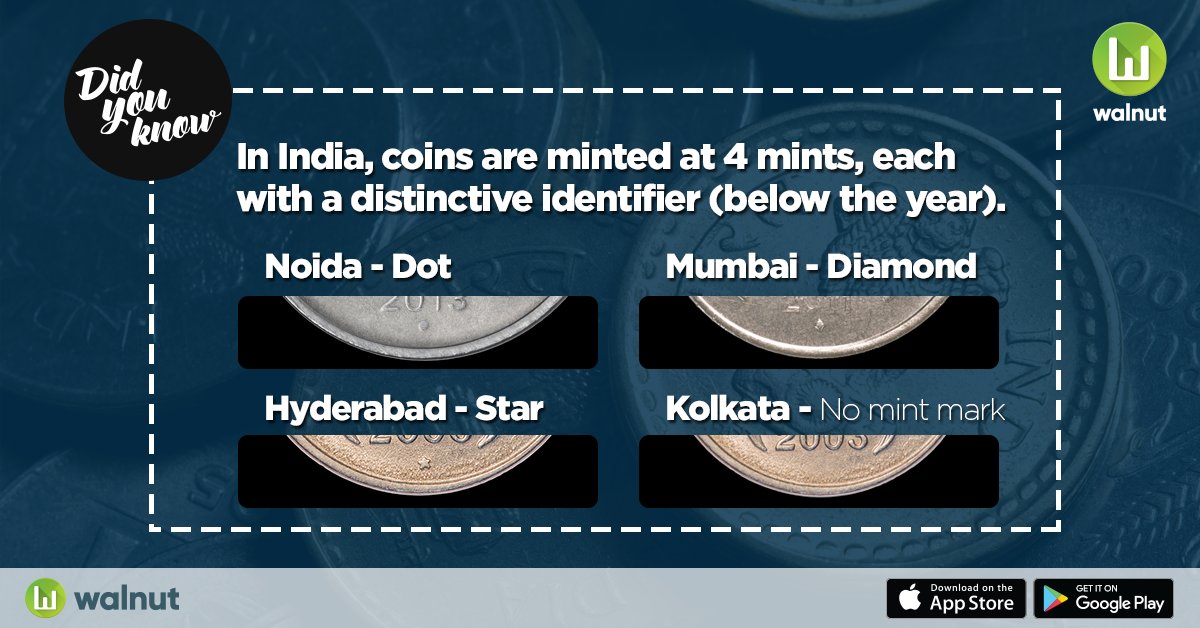 #DidYouKnow In India, coins are minted at 4 mints - Noida, Mumbai, Hyderabad, Kolkata - each with a distinctive identifier (below the year).pic.twitter.com/t73VovqhXv